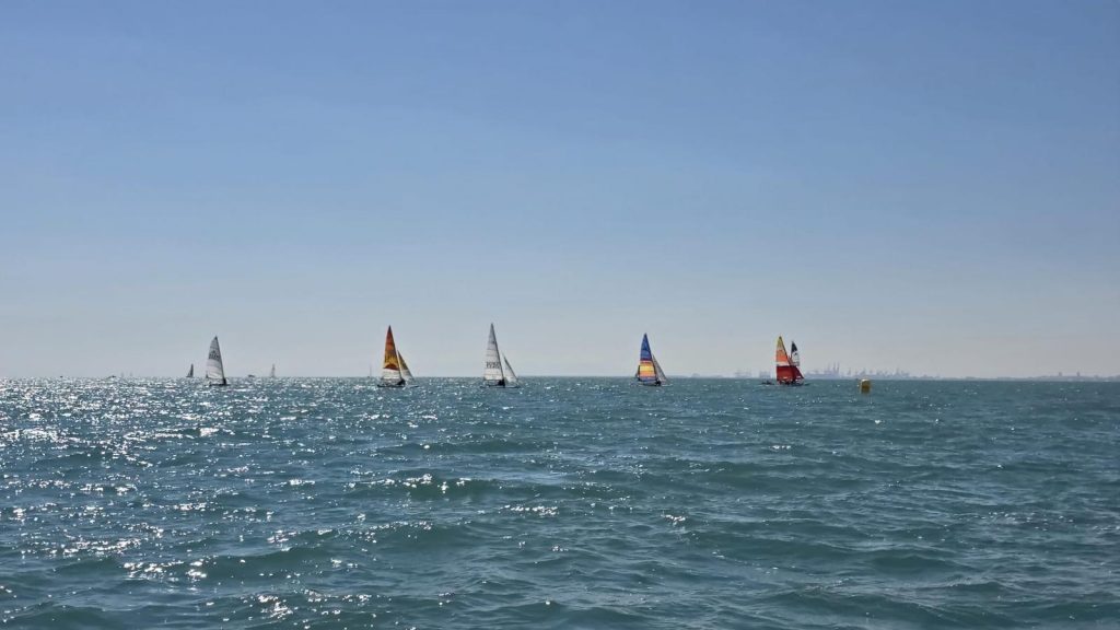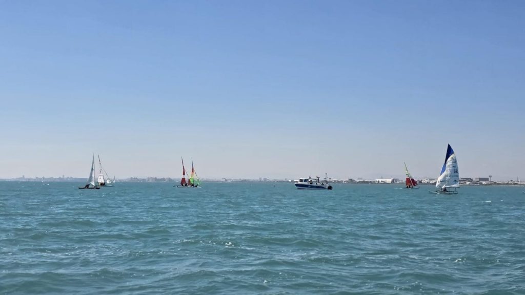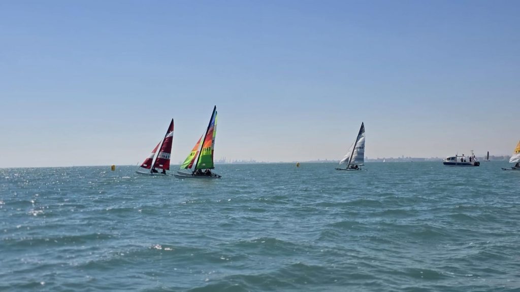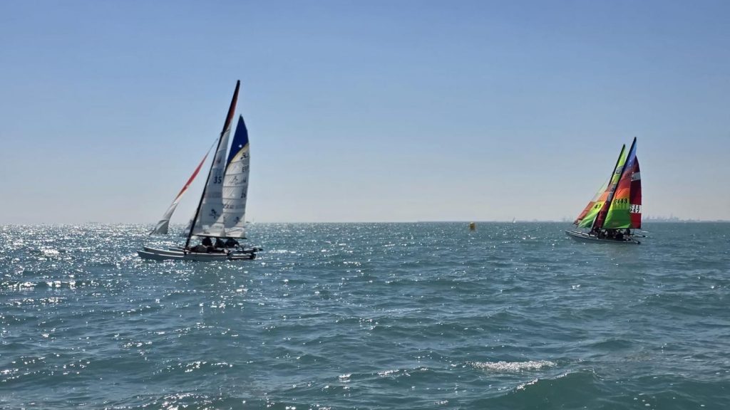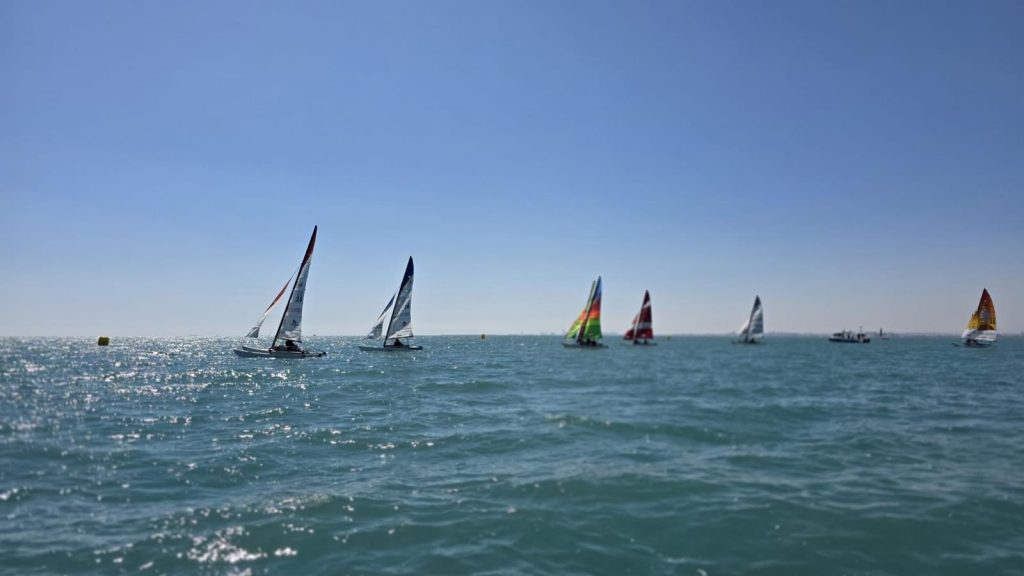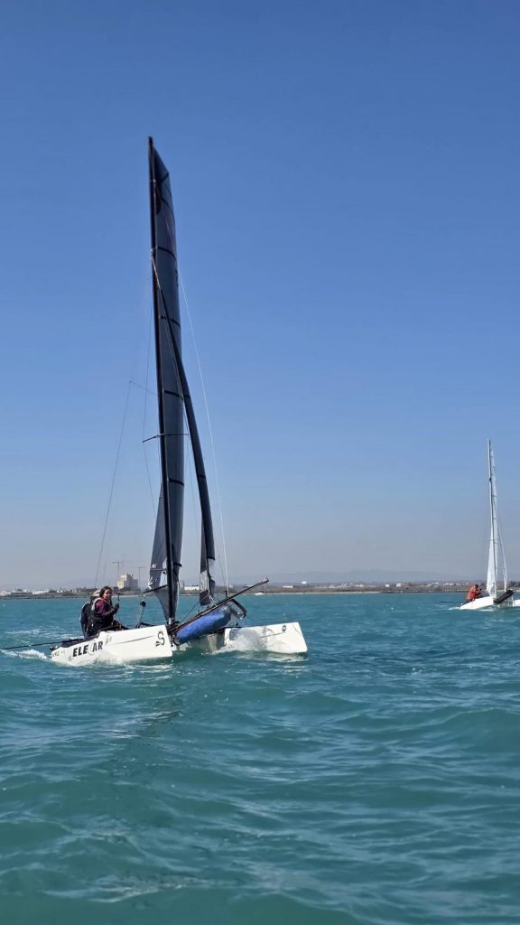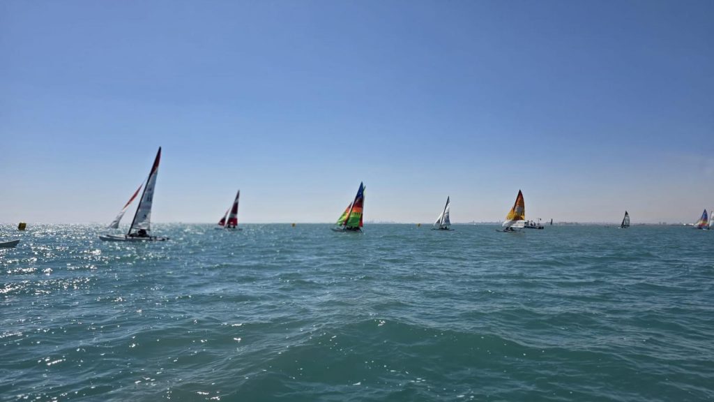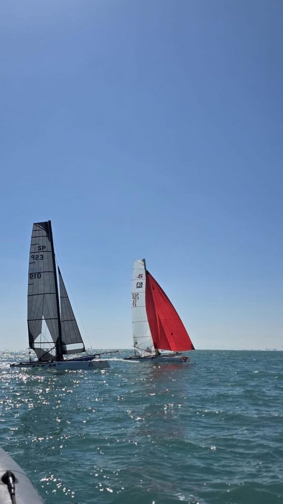 El domingo, sin embargo, la meteorología dio un giro positivo. La entrada de un viento térmico progresivo permitió completar un intenso programa de regatas: cinco pruebas por categoría, a excepción del Patín Catalán, que completó cuatro mangas. A medida que avanzaba la jornada, las condiciones fueron mejorando, con viento estable que llegó a alcanzar los 14 nudos en la última regata, ofreciendo espectaculares ceñidas y rápidas empopadas.
